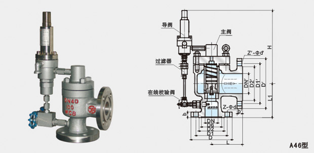A46Y/F-16C/25C/40C先導式安全閥用途 該閥門利用導閥壓力信號打開主閥擁瓣,具有開啟靈敏,回座壓力高,密封性好等特點,廣泛使用于石油、天然氣等設備或系統,作為an全保護裝置。